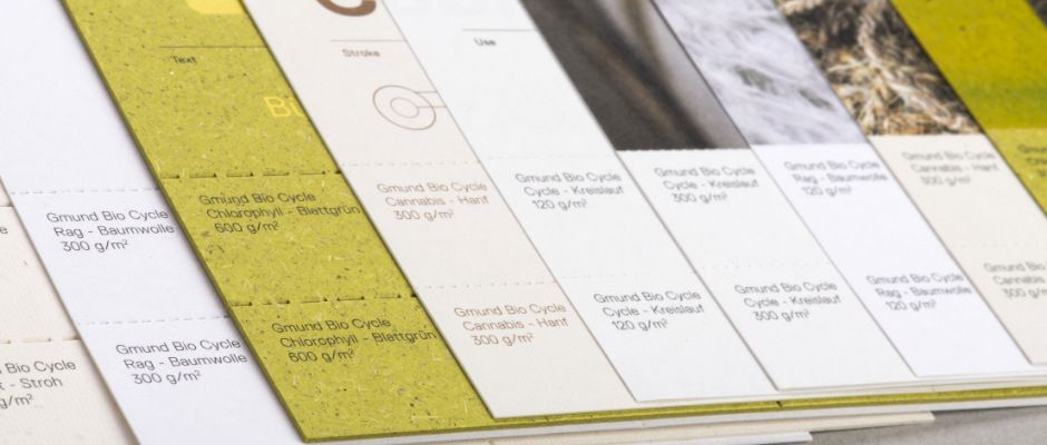 Gmund Bio Cylce is onderdeel van een reeks papiersoorten die gebruikt zijn van "waste" uit andere productieprocessen. In de kledingindustrie wordt alleen het pluizige deel van de katoenplant gebruikt en is het restant afval. Datzelfde geldt bij de teelt van hennep. De restanten van de katoen- en hennepplant worden gebruikt voor de Bio Cycle papiersoorten van Gmund. Maar ook restanten uit de bierindustrie (Bierpapier) en tomatenteelt worden gebruikt om papier te maken. We hebben zelfs papier dat nog ruikt naar grassen.